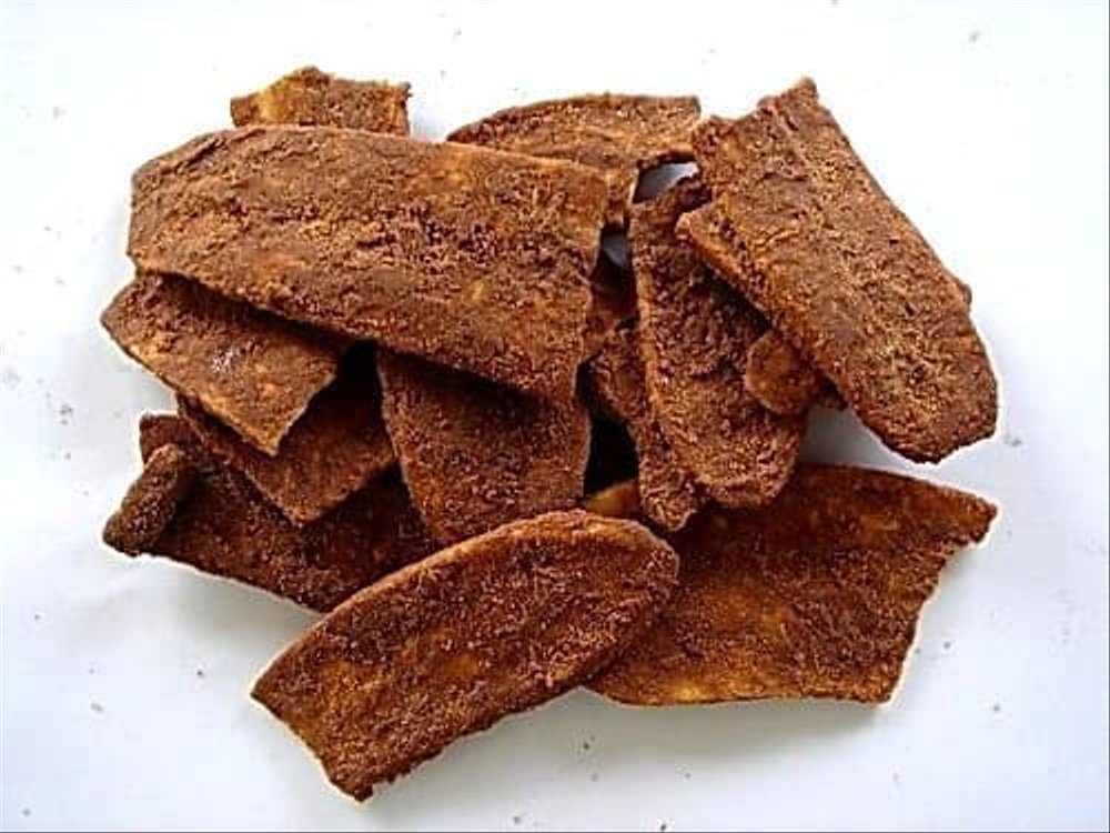 11. Tutup wadah lalu kocok hingga bubuk menempel pada pisang.Keripik pisang coklat siap disajikan.