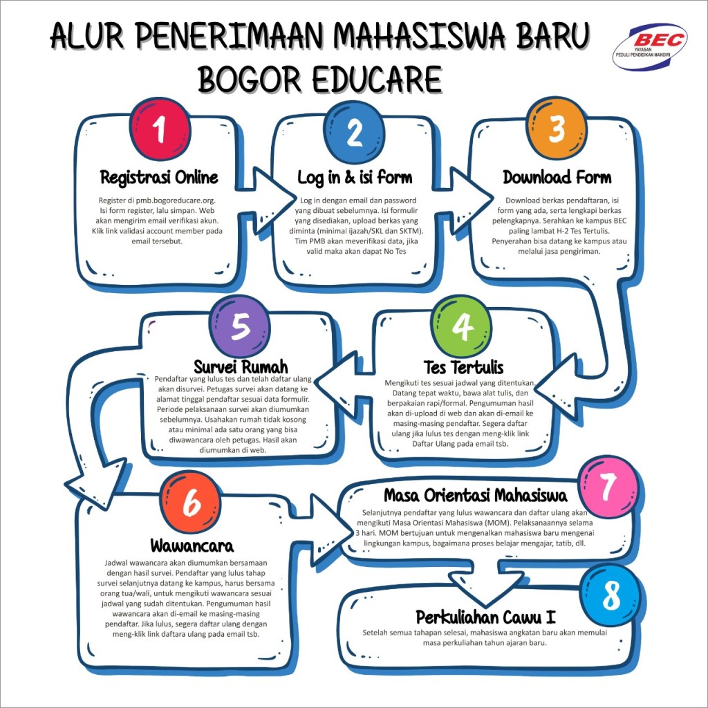 Ayo sobat jangan sia-siakan waktu muda mu segera daftar di kampus Bogor EduCARE insya Allah dapat memberikan manfaat dan wawasan lebih banyak dan juga banyak keunggulan. Silahkan daftar di  https://pmb.bogoreducare.org